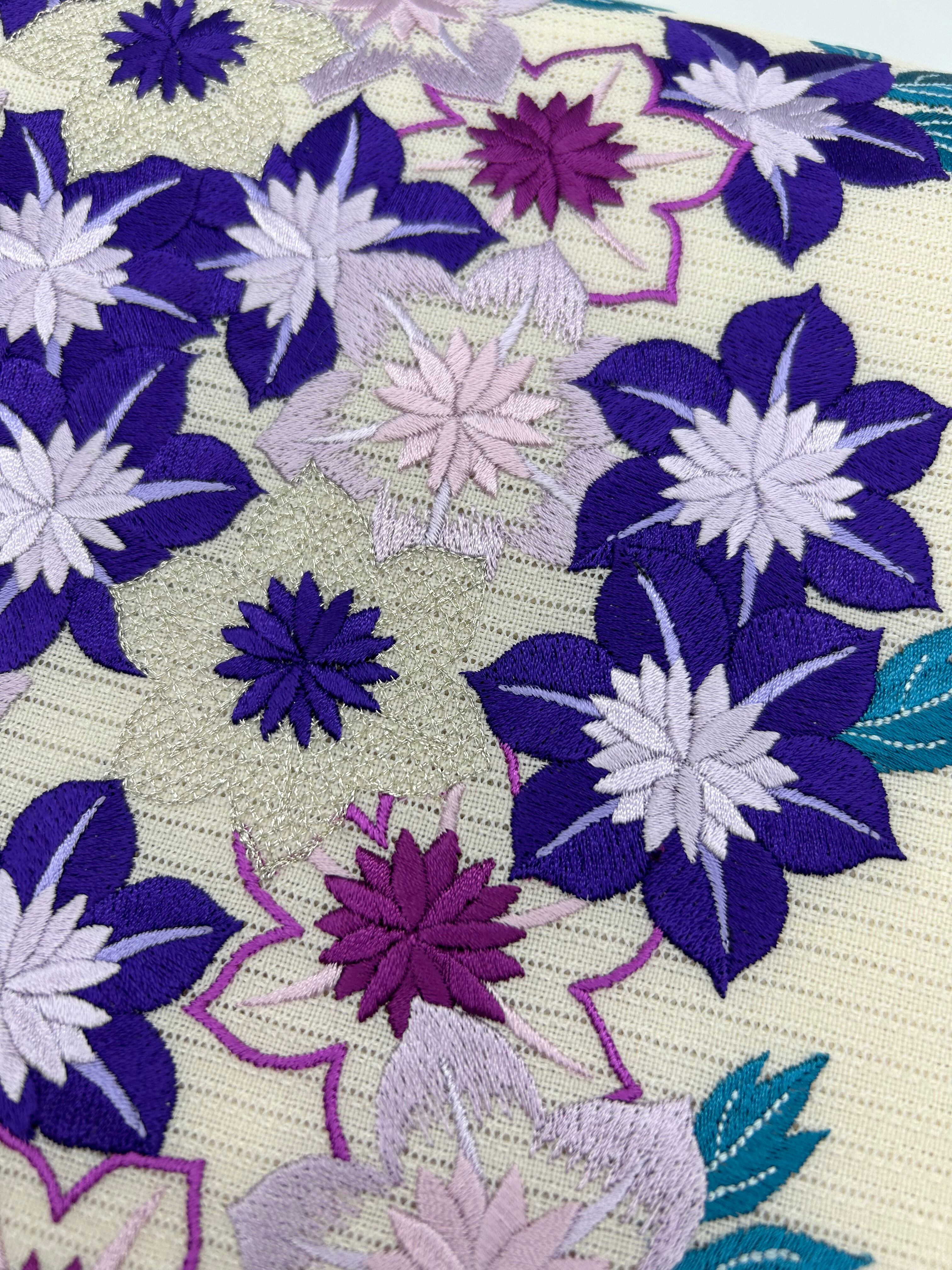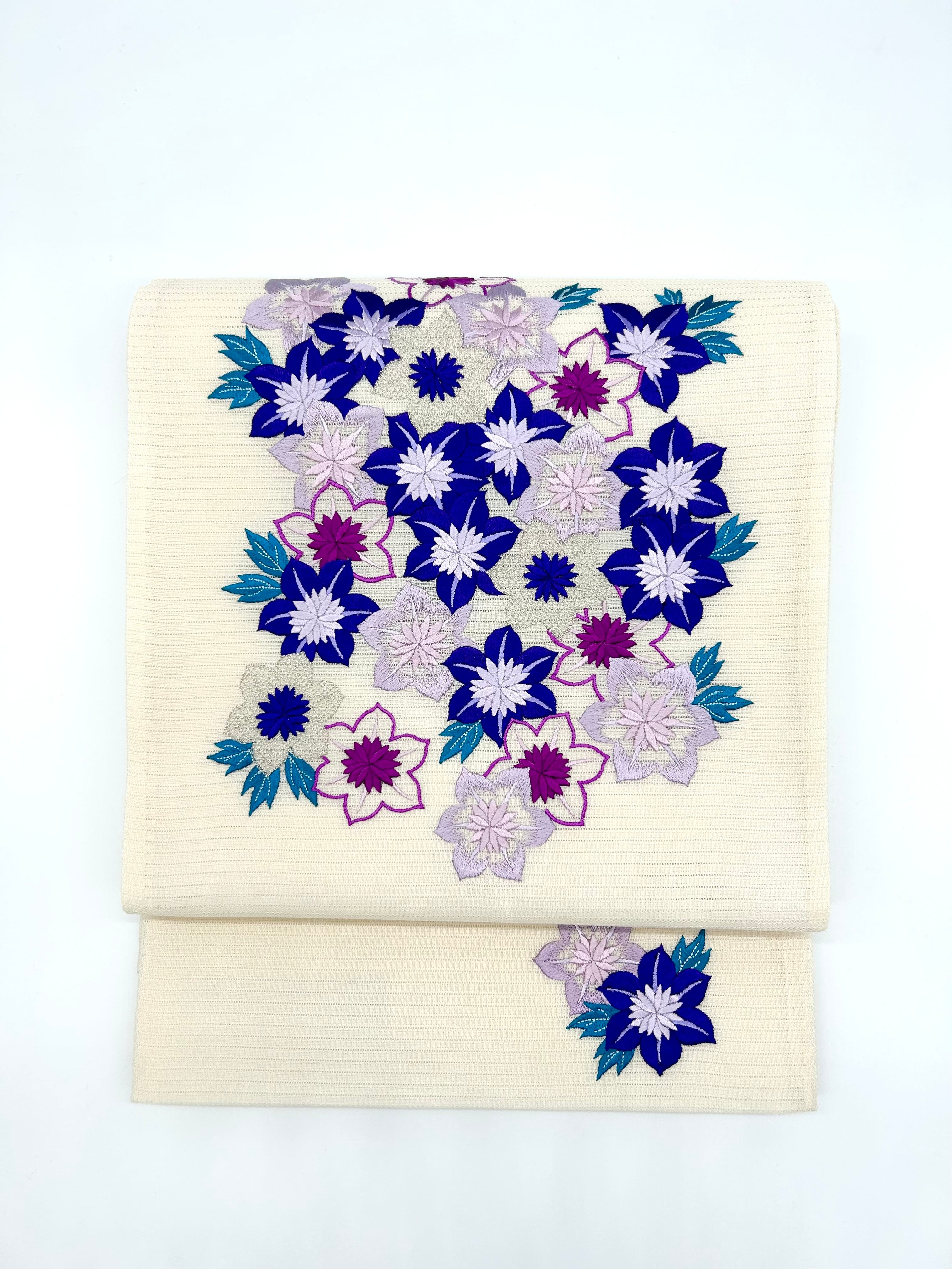 鉄線(てっせん)柄刺繍 絽京袋帯(撫松庵)