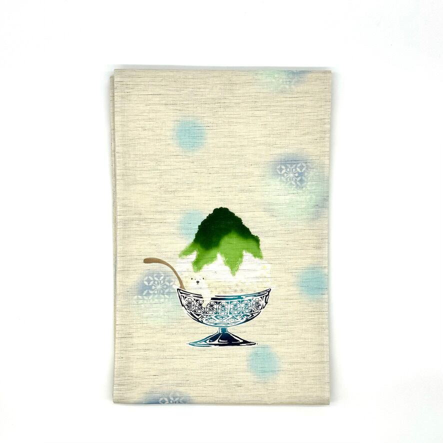 絵本のような可愛らしいデザインで、さらりとした麻の生地感が暑い季節に心地よい、単衣の季節〜夏にピッタリなぴったりな麻の京袋帯です。カジュアルな夏着物に合わせたり、浴衣に合わせても粋でいいと思います。